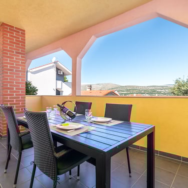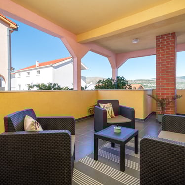 Villa Cosy's 1st-floor F3 apartment (55 m²) has a fully-equipped kitchen, a private bathroom with shower, washbasin and toilet, a lovely lounge/kitchen area, 2 comfortable bedrooms and a very spacious sea-view terrace. It sleeps 4 people