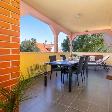 A lounge with dining table, TV area, plenty of storage space, large sofa, aperitif area and dining area opens onto a spacious 40m² sea-view terrace. Air conditioning is also available. It's spacious and ideal for 4 people. You can also enjoy television and a wide range of international channels