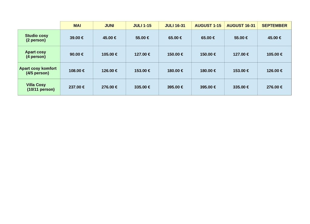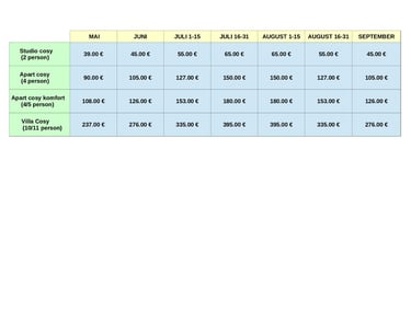 Sehen Sie sich unseren Kalender und unsere Preise an, um Ihren perfekten Aufenthalt zu planen